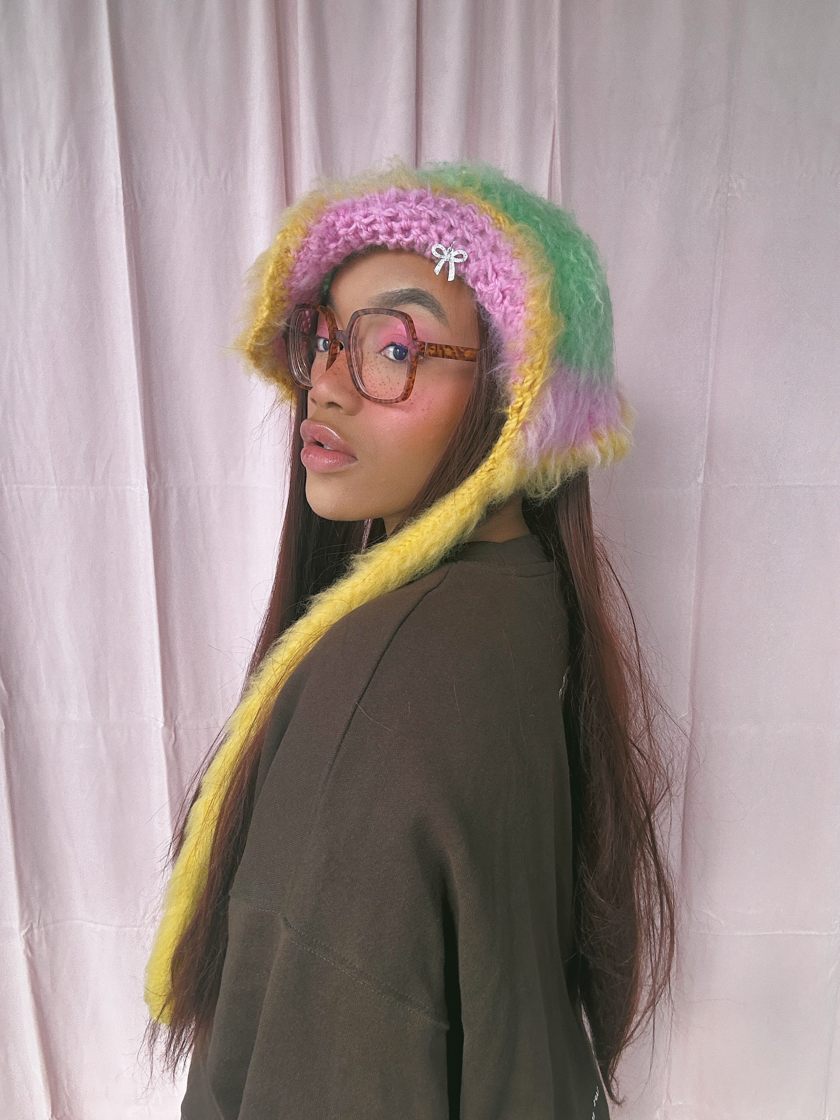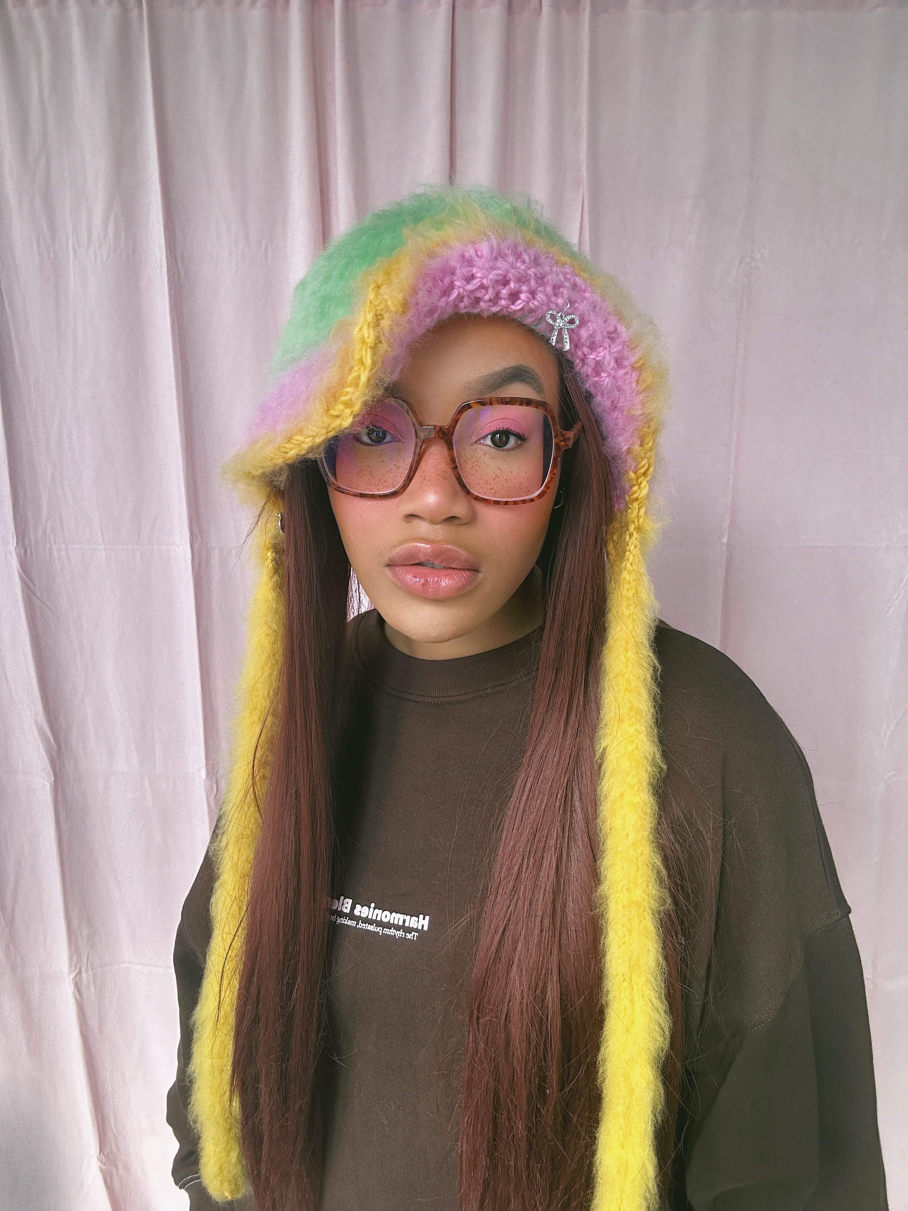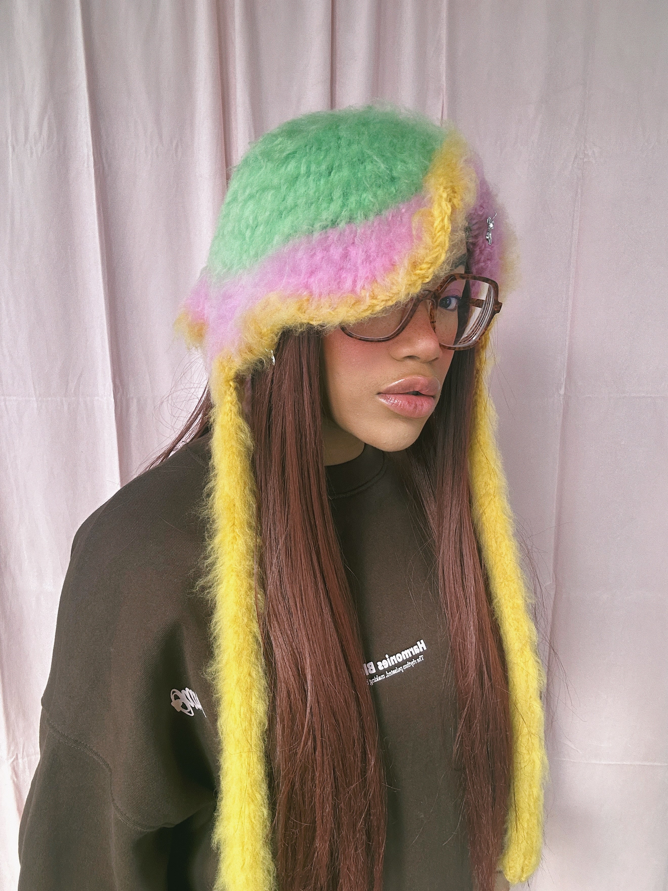 1 OF 1 Green, Pink and Yellow Floppy Bonnet