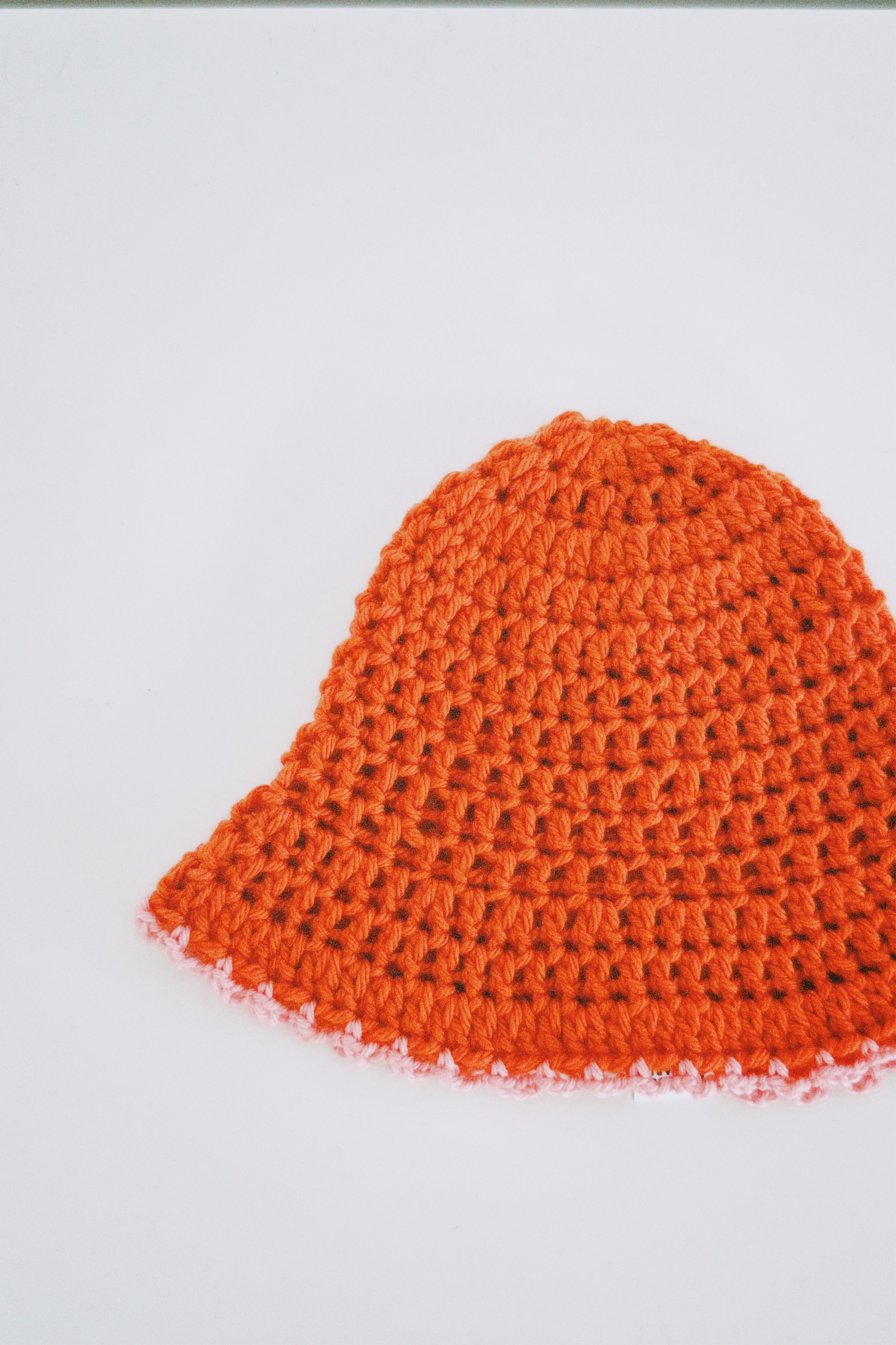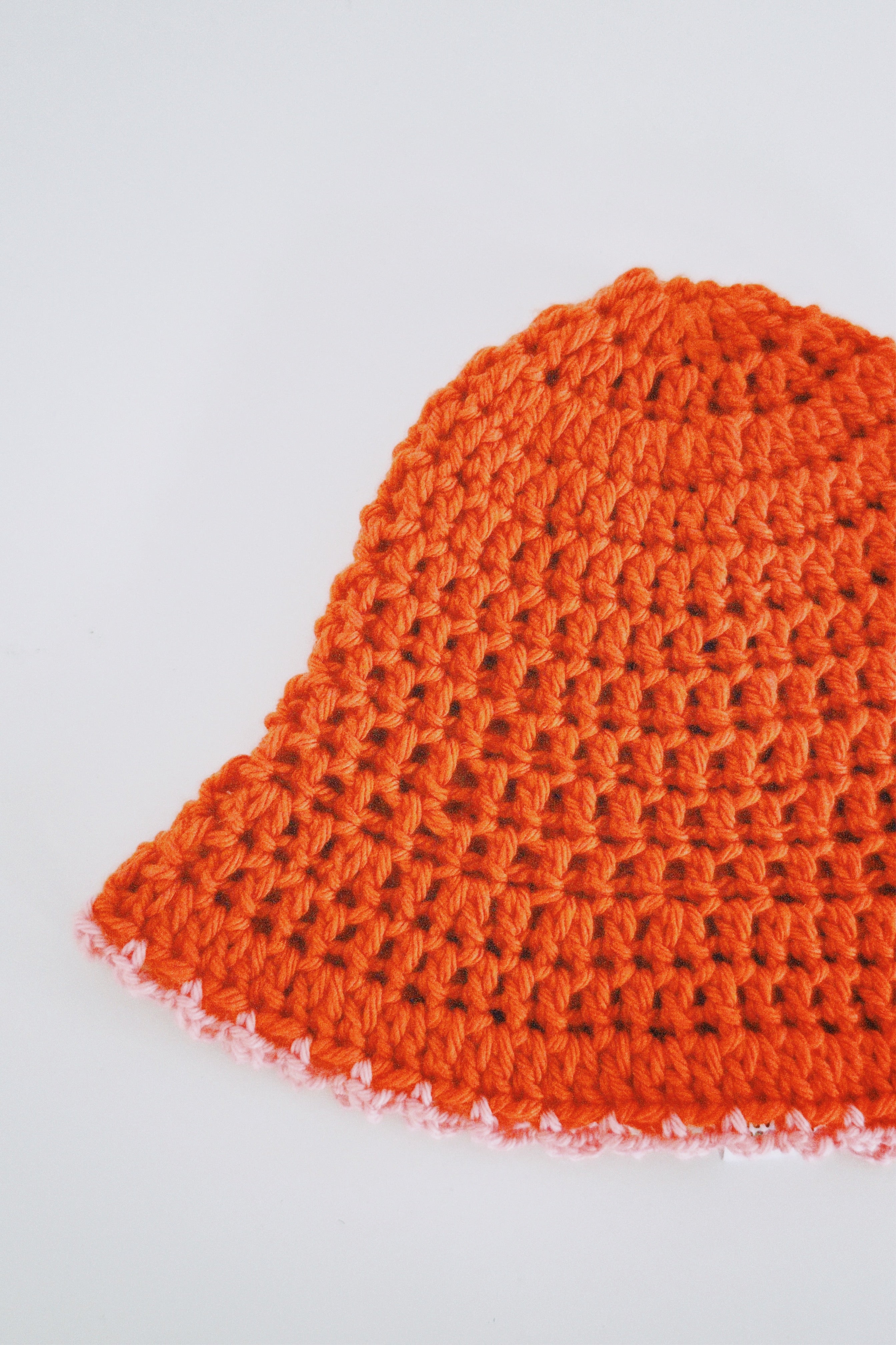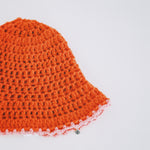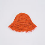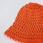 This crochet hat in vibrant orange is designed to make a statement. Its lightweight, breathable construction with a subtle pink trim on the brim adds a touch of contrast. Perfect for a sunny day or a winter’s outing, this hat brings a pop of color to any look.