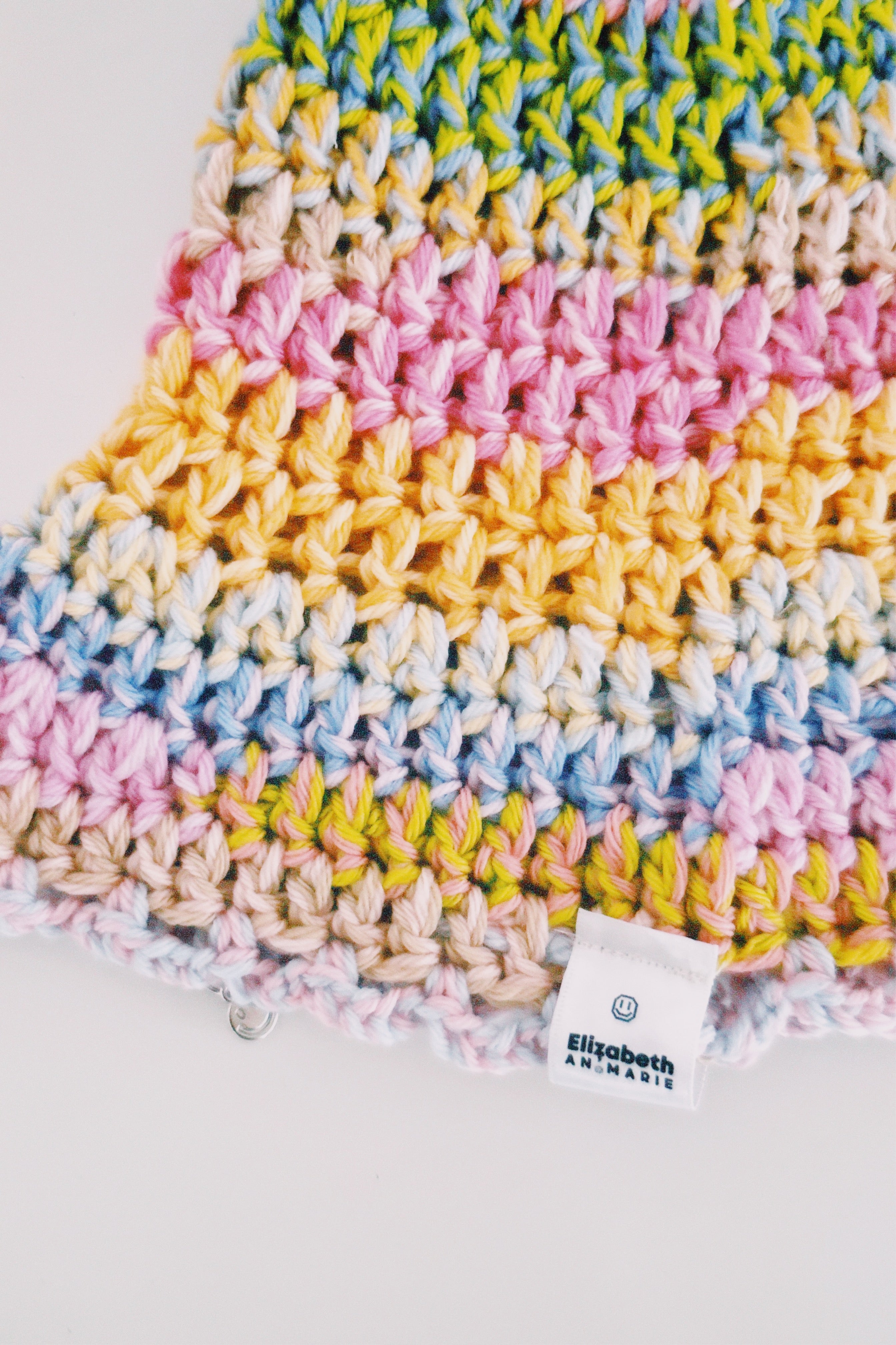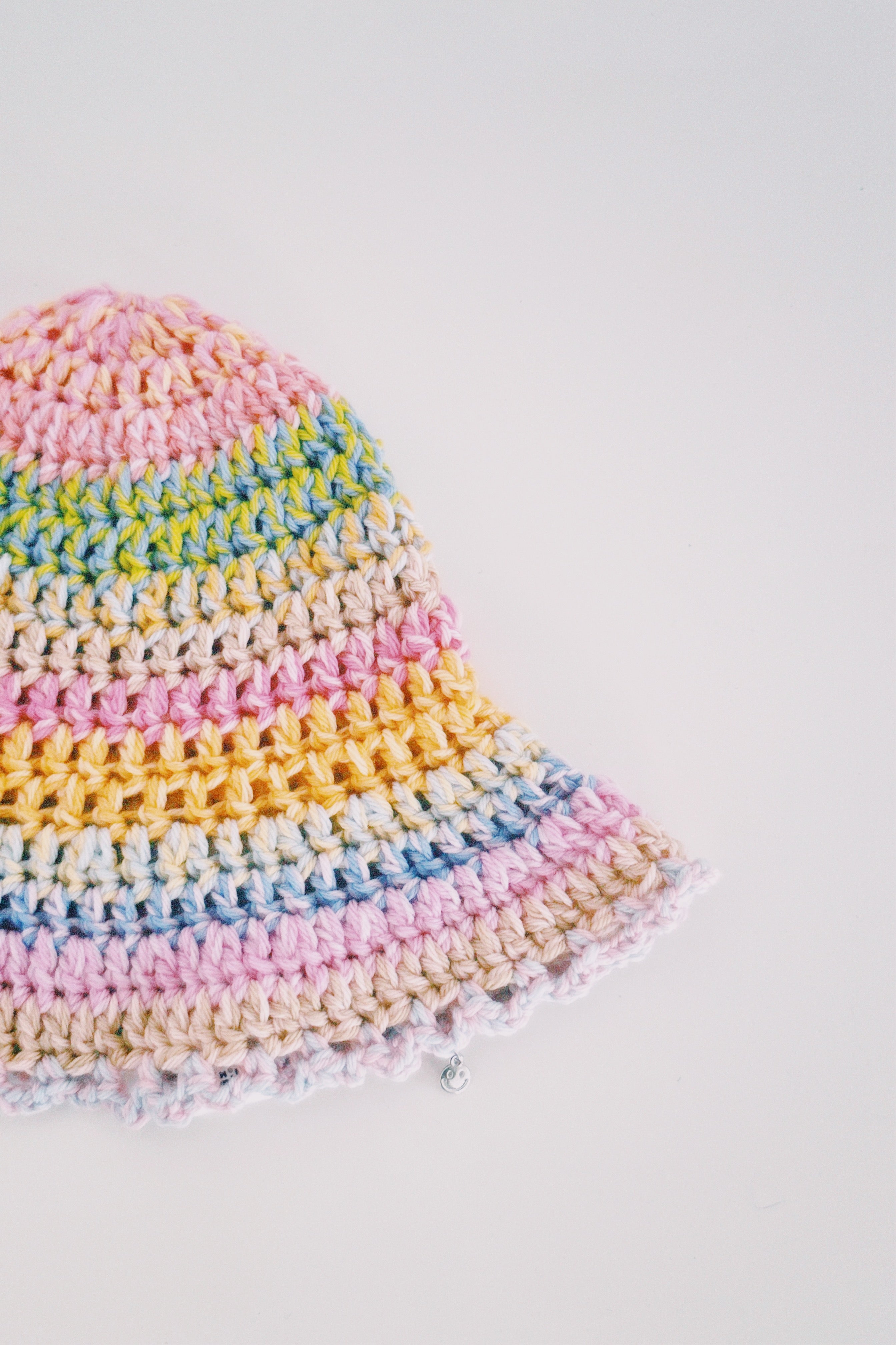 Crafted using scrap 100% Merino yarn, This hat not only provides you with a stylish look for the spring season but also ensures comfort and warmth during the colder night of spring. The Luxurious texture of this yarn adds a unique touch to the design. Adding an extra touch of cuteness with a orange crochet trim, making it stand out from the crowd.
