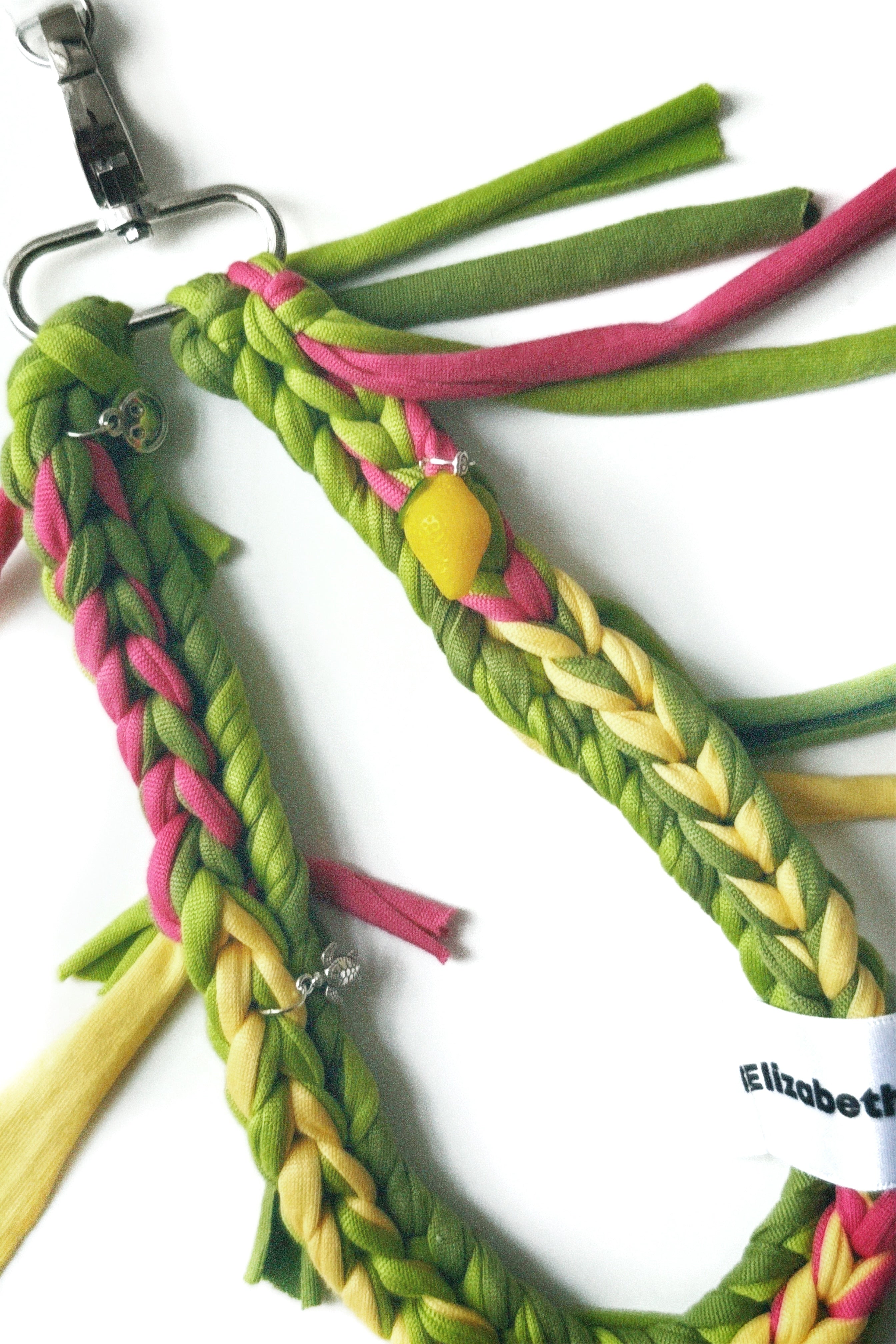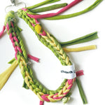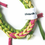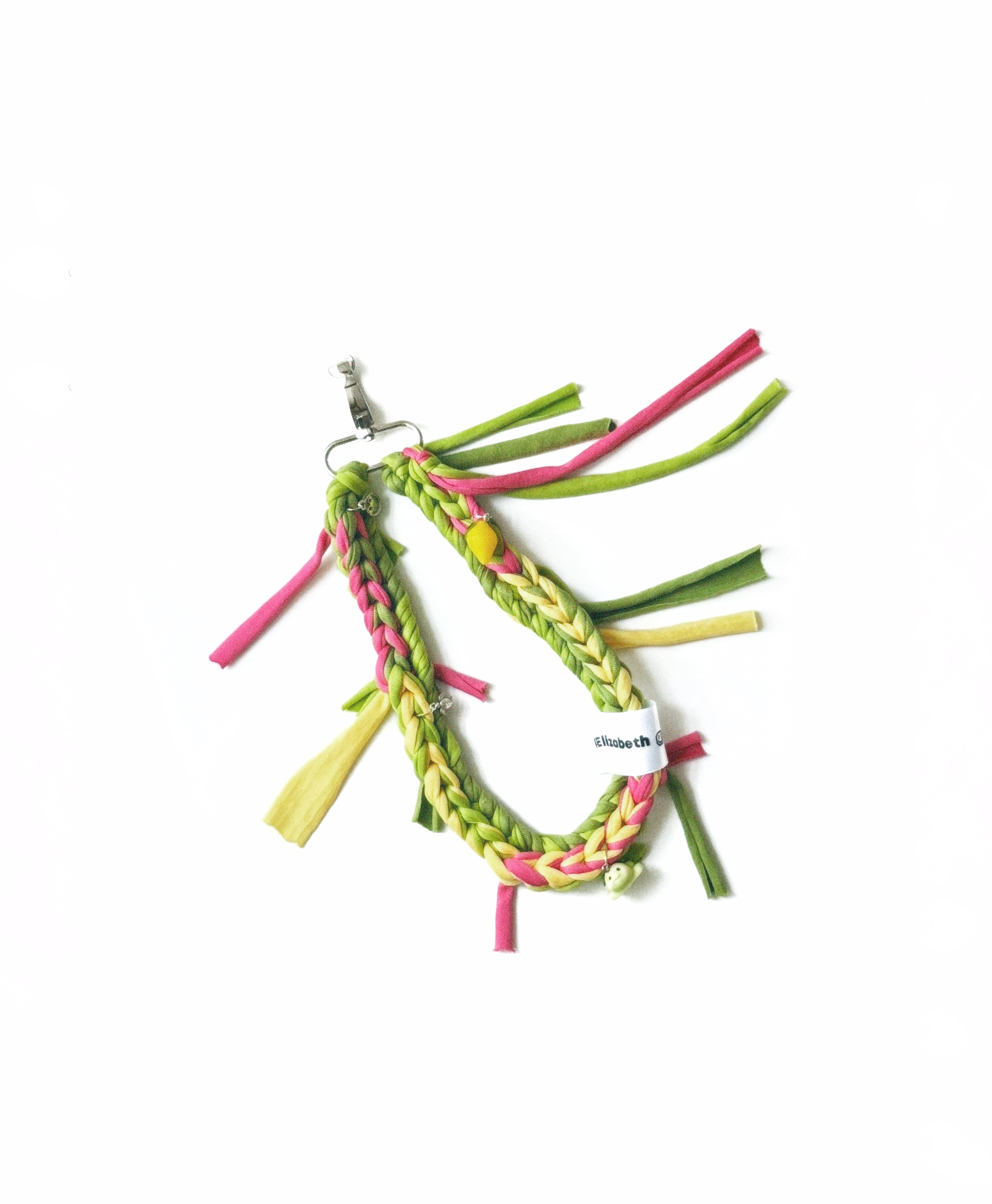 Neon energy in strap form. Tutti Frutti mixes electric pink, lime and sunshine yellow t-shirt yarn into a bold braid with playful tassels and charms. Equal parts fun and chaotic- in the best way.
