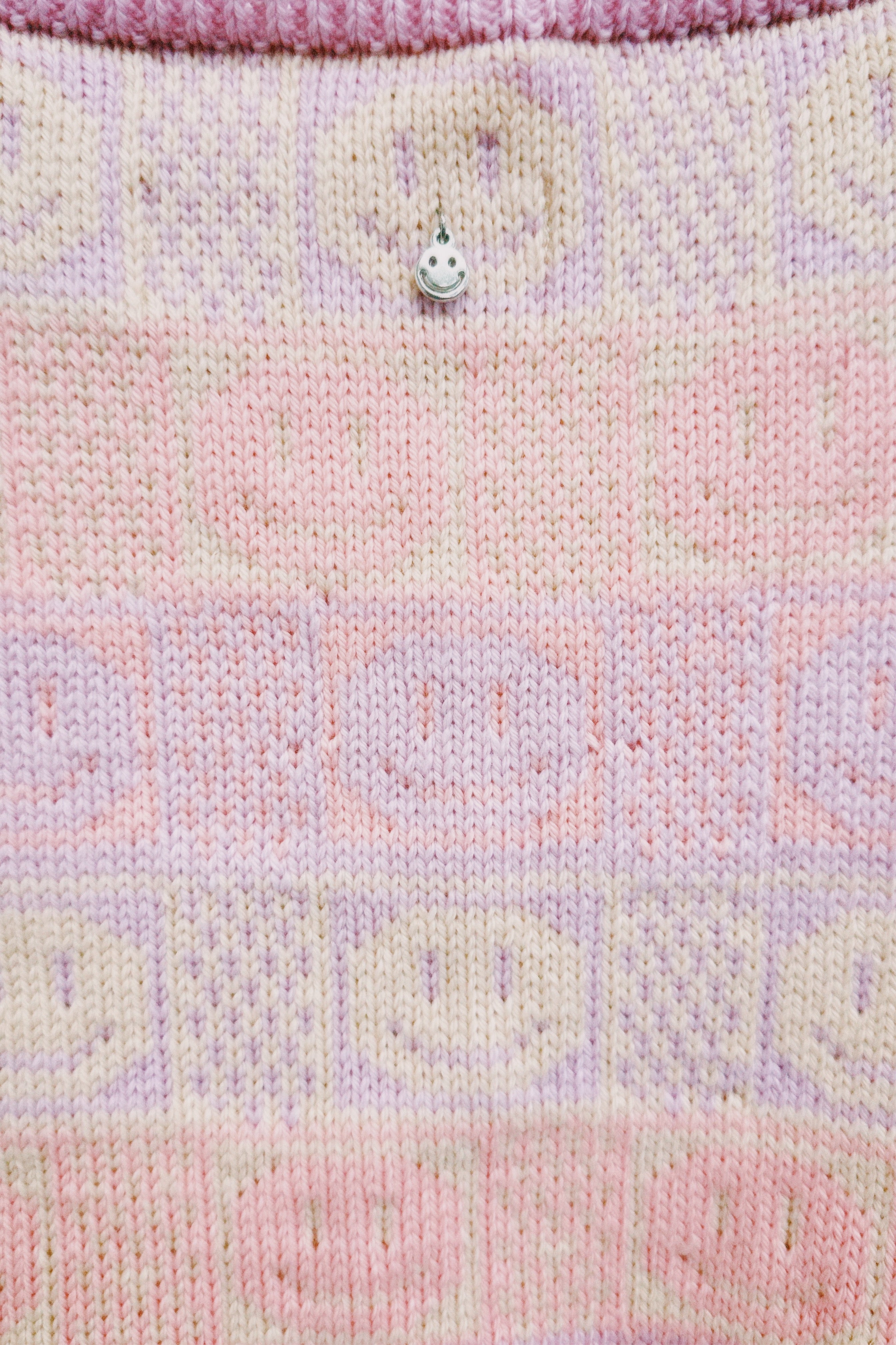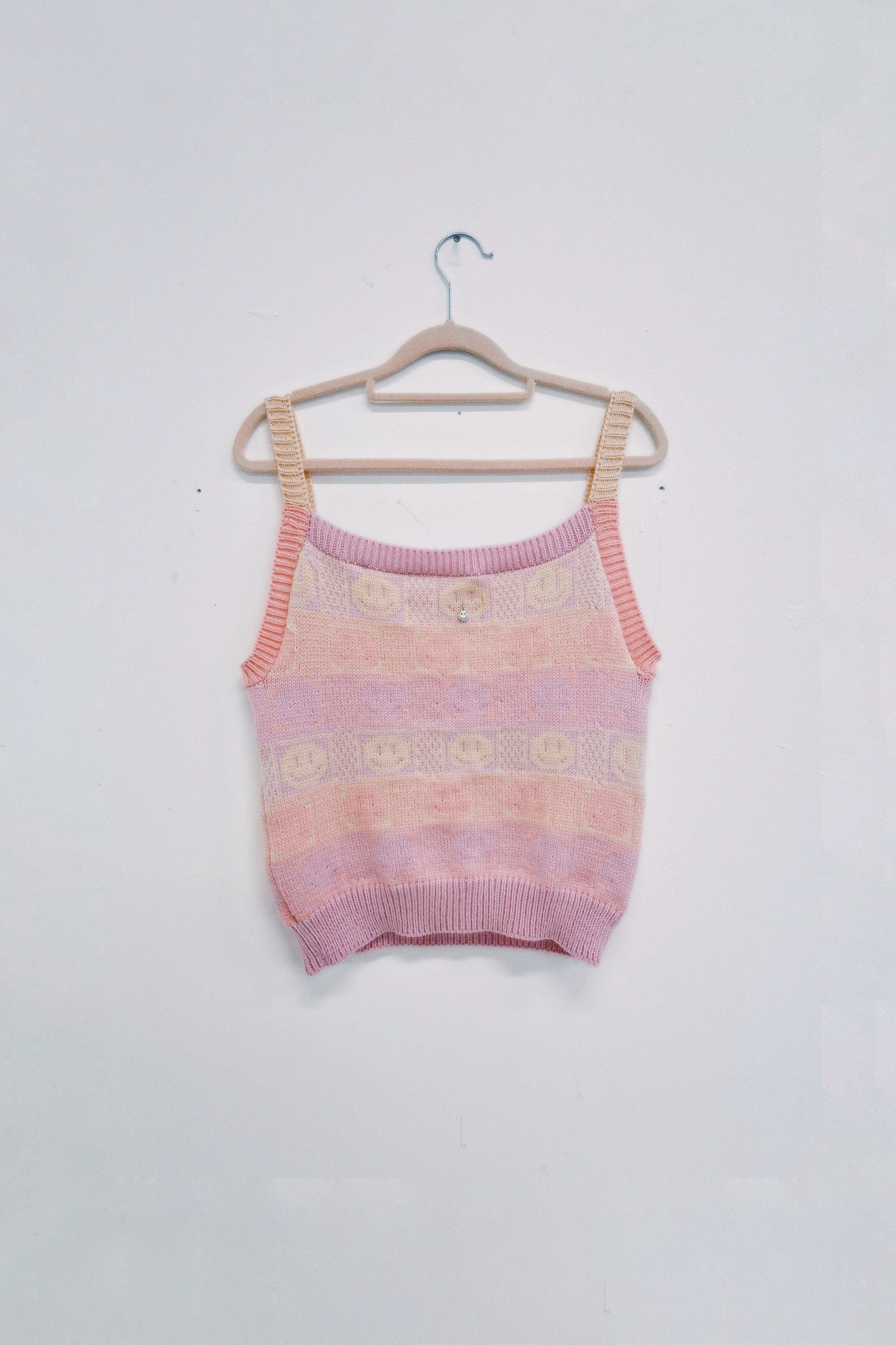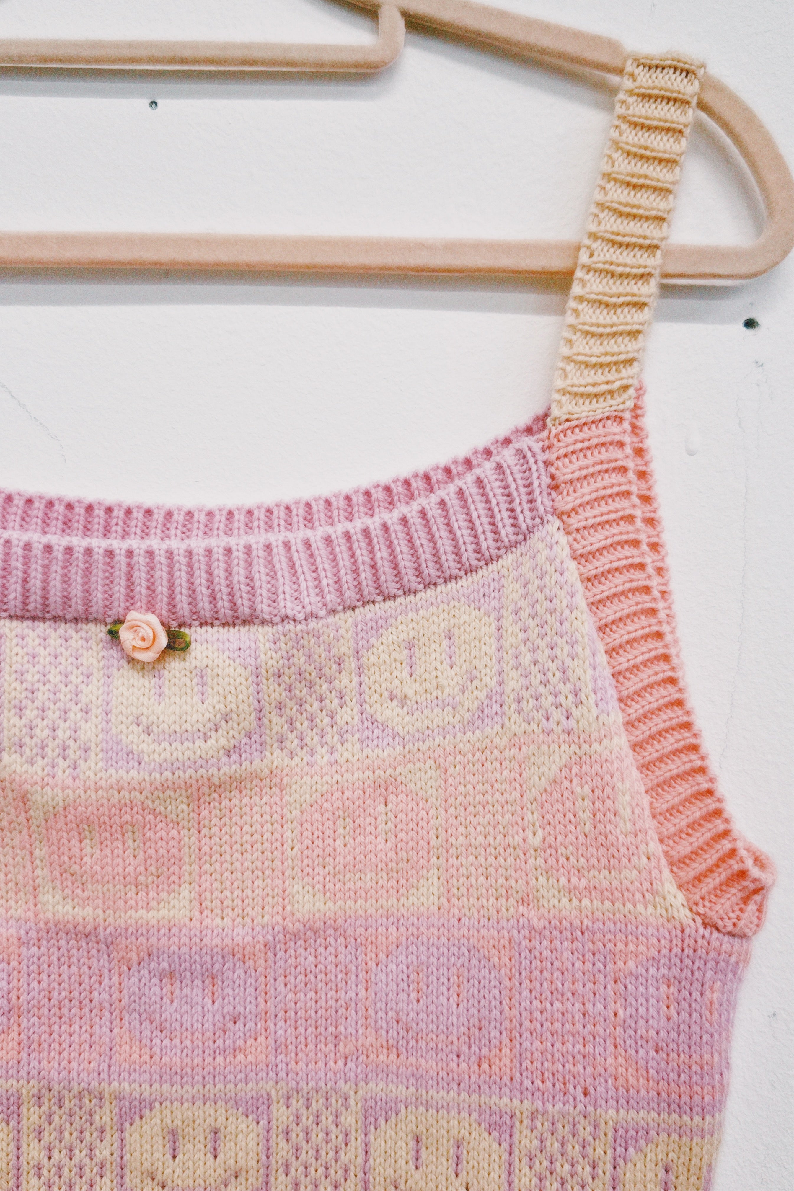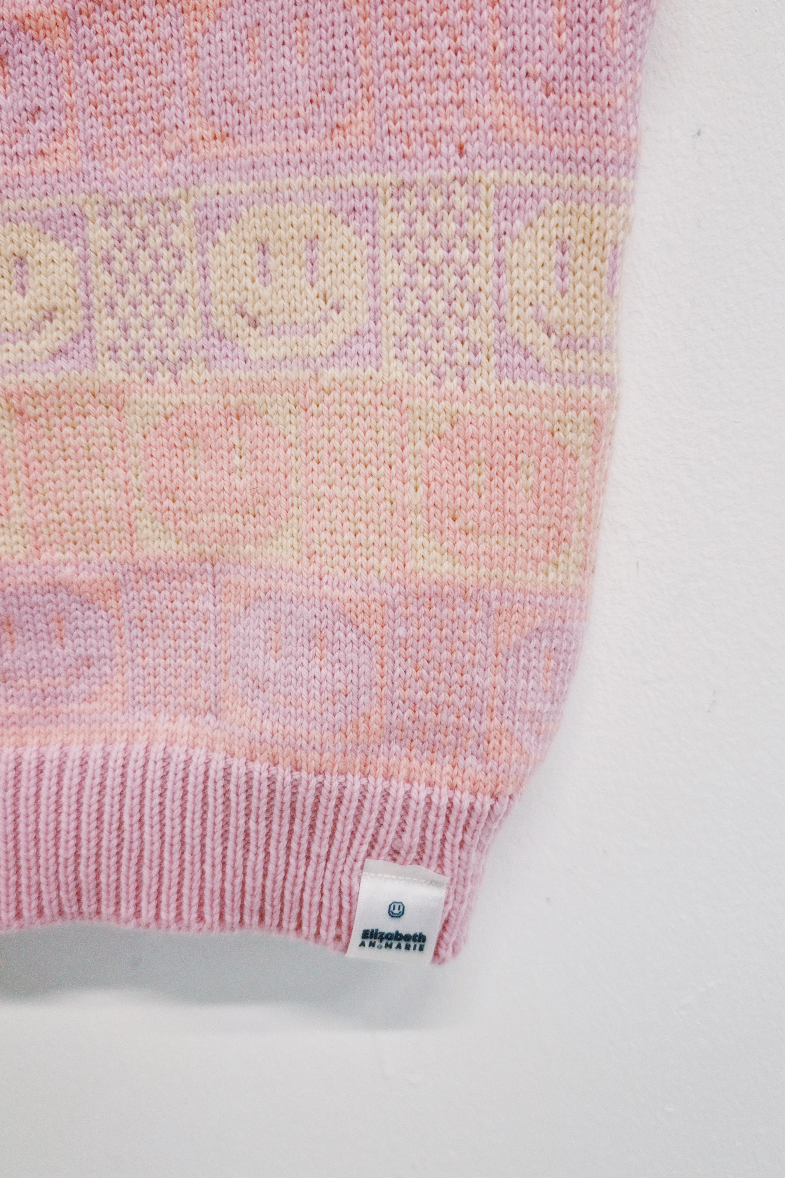Smiley Checkerboard knit tops, made using 100% merino yarn. Soft and breathable, perfect for any weather. Made to order in a range of sizes. Machine washable for easy care. Adds a playful touch to any outfit.
