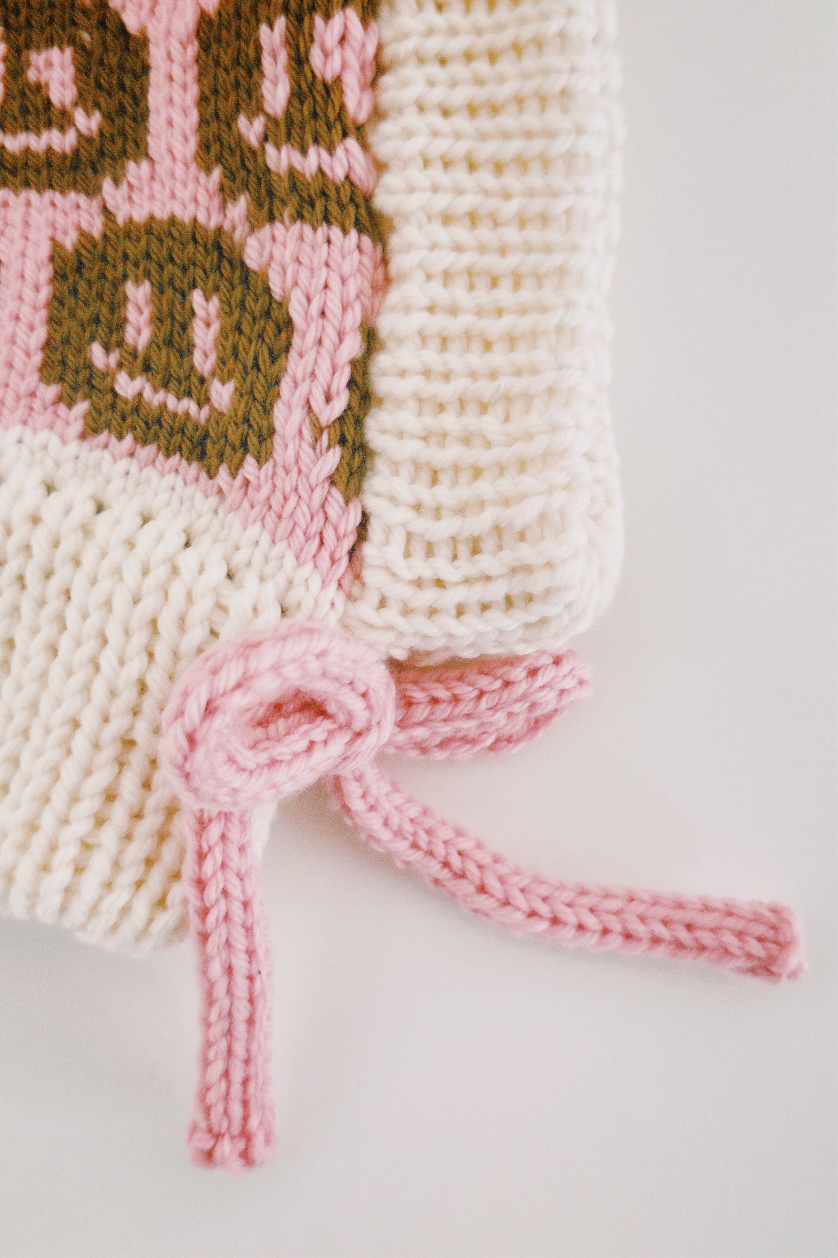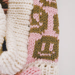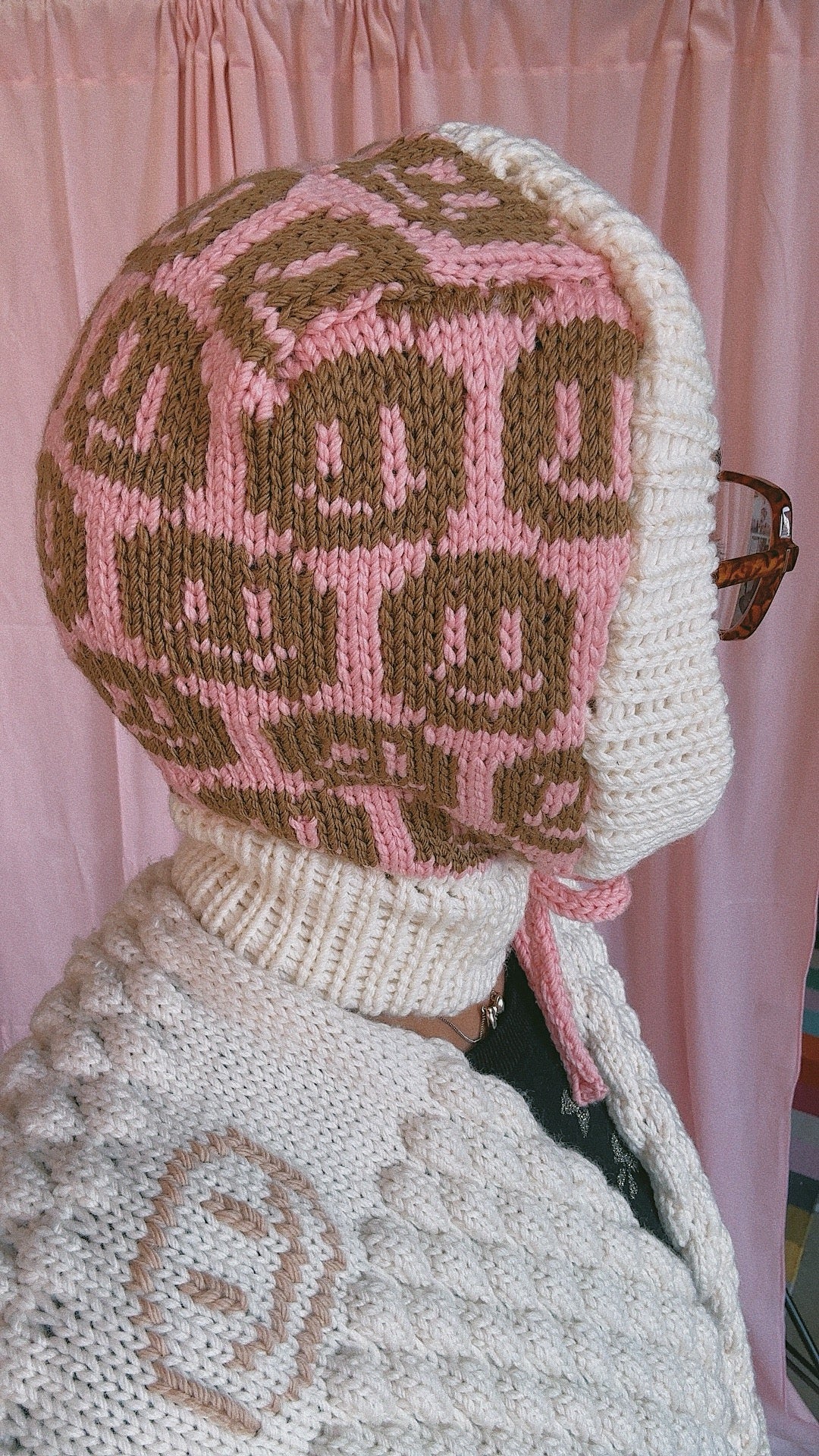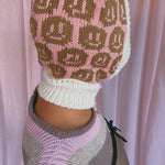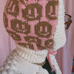 SAMPLE Smiley Aran Salmon, Ivory and Brown Balaclava