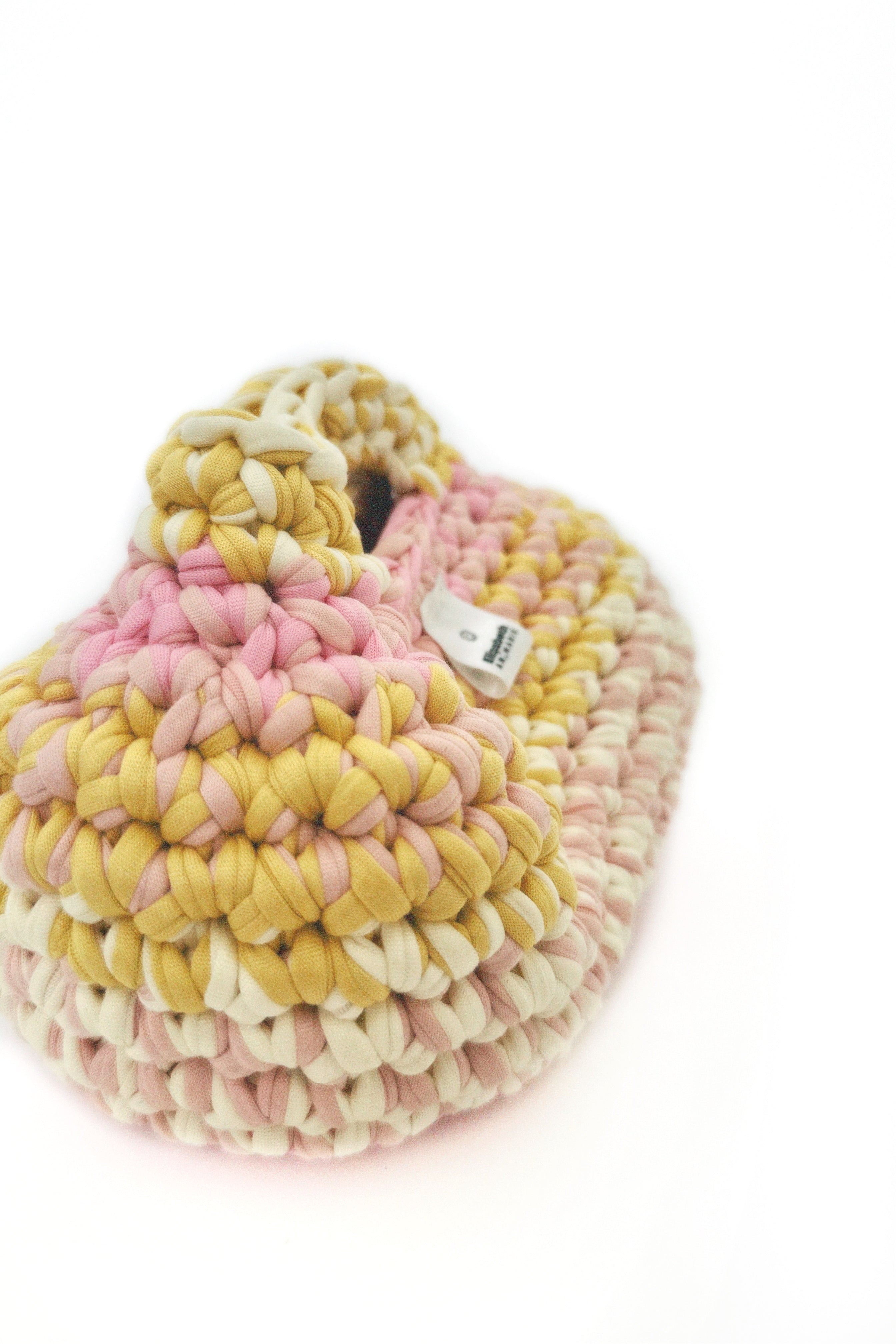 Handcrafted from premium t-shirt yarn, the Curvy Loaf Bag balances durability with playful texture, making it the go-to piece for anyone who loves functional fashion with a creative twist. Each stitch is full of character, giving every bag a one-of-a-kind finish.